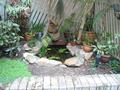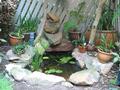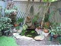 Various photos around home: the fishpond, the view from the lounge room, the waterfall (when dry), the back yard.