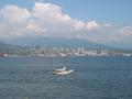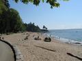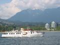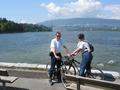 12:30pm: We hired a couple of bikes from Simon's Bike Shop and headed for the waterfront. Rode all the way around Stanley Park. Saw a bloke balancing stones by the water, and what passes for beach in Vancouver. Had an ice cream sitting on a log (yes, a log, there were lots of them) on one of them. Obviously too cold for swimming because there was no-one in the water. Not too cold for the natives to sunbake though ...