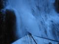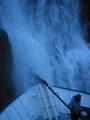 When we were about 10 metres away it became obvious that he wasn't going to stop. Sure enough, Captain Jim crept slowly onward, until the bow was under the falling water and only inches away from the rock. I later asked him how much room we had under the bow and the answer surprised me. Although we were only a few inches from the mountainous shoreline, there was about 40 metres of water below us!
