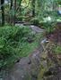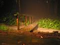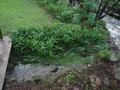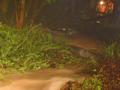 The last few photos show the aftermath the next morning. The first of these shows the path the water took around the tree fern on the opposite side of the creek. The next shows the flattened vegetation along the creek bank and the large lump of sandstone that came from somewhere upstream (it's also visible in a couple of the other photos). You can also see where the water has flowed over the bridge next door and left a fair amount of debris behind.