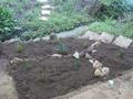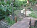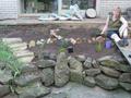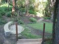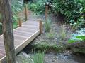 Here are a few photos of the garden, showing the work we've done recently. Since I took these, we've added a few more plants in the new bed near the house, and I've oiled the bridge which has brought out more colour in the timber (it had faded a bit since it was built).